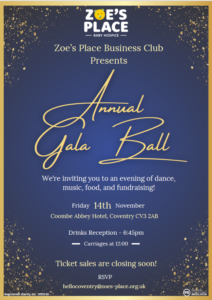 This year marks the Zoe’s Place 10th annual Gala Ball! This will be taking place on Friday 14th November at Coombe Abbey Hotel.